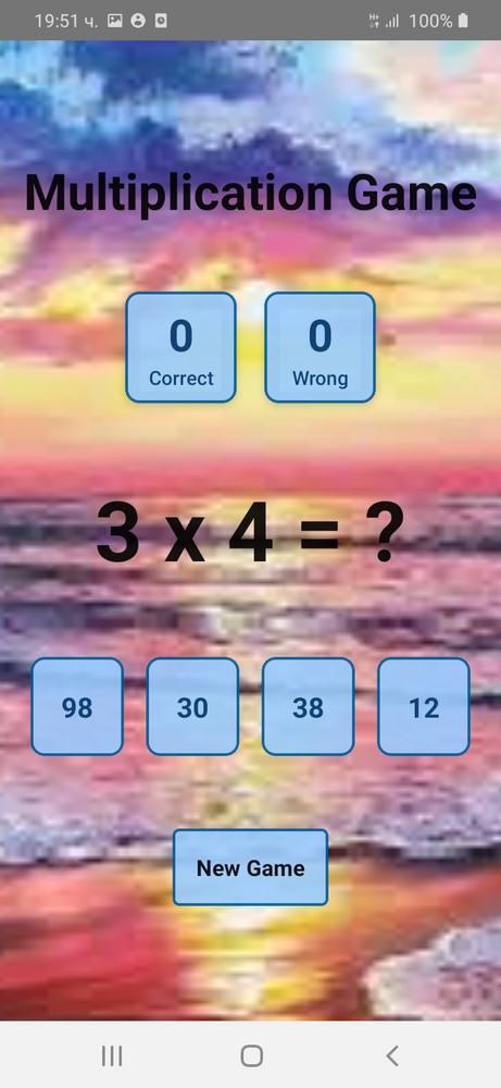 Reset Functionality: Includes a "New Game" button to reset scores and generate a new question.
